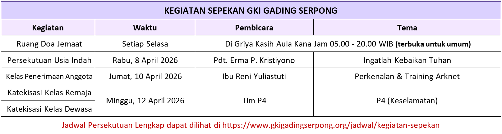 Jadwal Kegiatan selengkapnya :