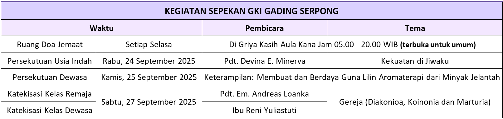 Jadwal Persekutuan Doa Jemaat